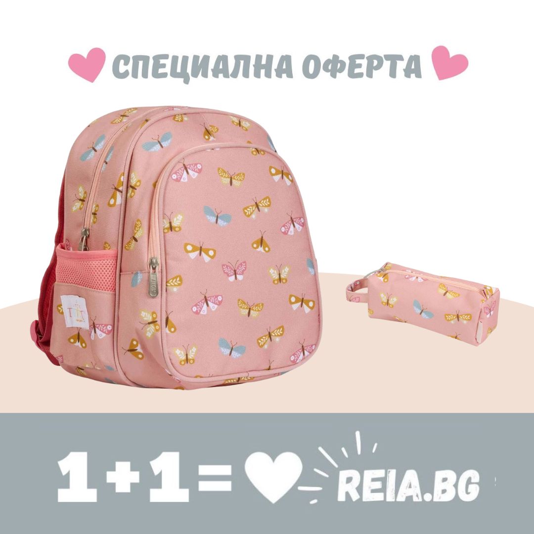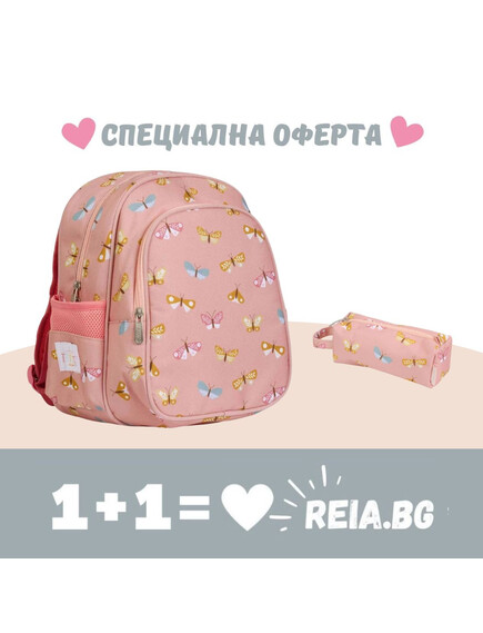 ОФЕРТА: A Little Lovely Company: Раница с изотермичен джоб 27 x 32 x 19 см "Пеперуди" + Несесер тип моливник "Пеперуди"