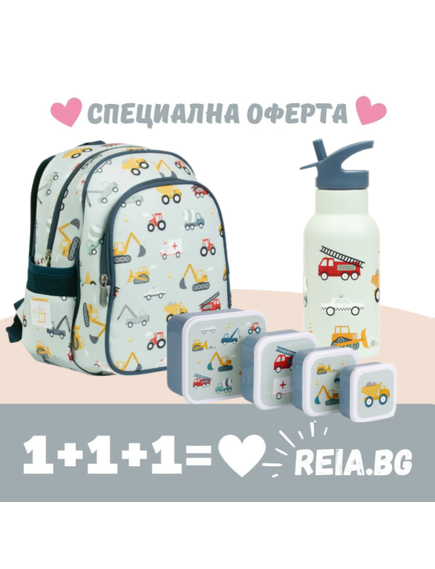 ОФЕРТА: A Little Lovely Company: Раница с изотермичен джоб + Бутилка от неръждаема стомана със сламка + Комплект кутии за храна