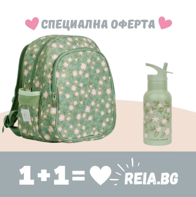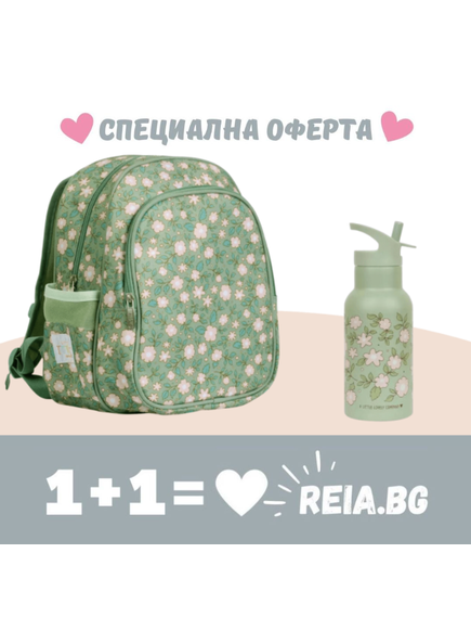 ОФЕРТА: A Little Lovely Company: Раница с изотермичен джоб и бутилка от нераждаема стомана Blossom Sage