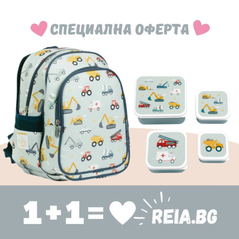 Готови за училище или градина...с най-перфектната комбинация - раница и комплект от 4 кутии за храна в същият дизайн!