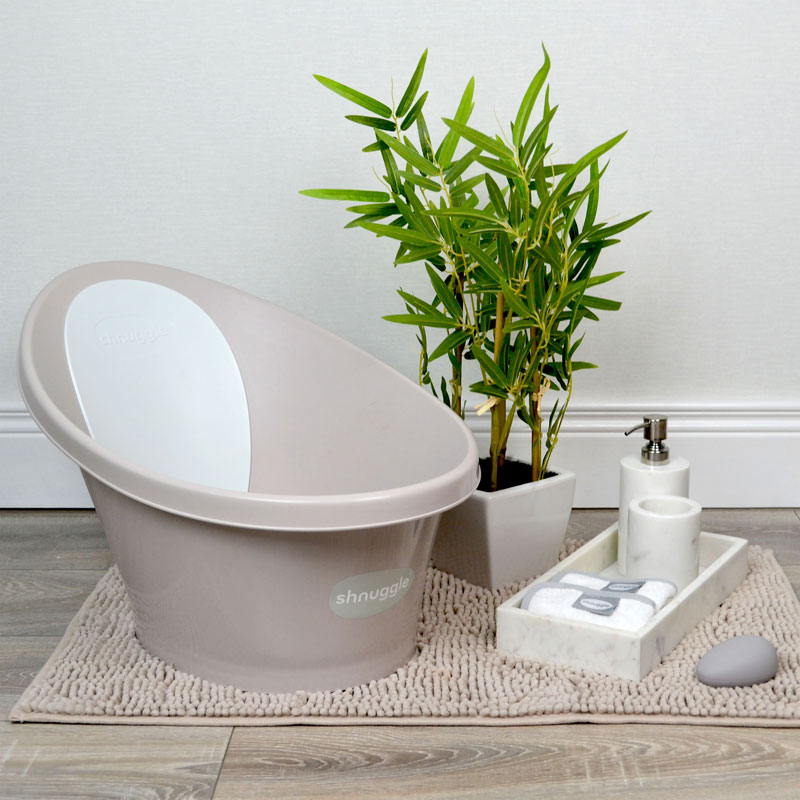 Етап 1 - Чрез придържане на детето: Бебето се чувства сигурно и защитено, защото го придържате, а същевременно с това издадената част (Bum bump) на дъното на ваната не му позволява да се изплъзне напред, което му носи чувство за стабилност! Когато го къпете в Shnuggle, то се намира в полуседнала и полулегнала поза и чувства сигурност, която една голяма вана или корито няма как да му осигурят. Причината за това са размерите. Детето е малко и беззащитно, все още не е свикнало с новата среда и поставяйки го в голямо пространство с течност, то се страхува. Когато порасне и започне да седи само ще можете да използвате ръцете си свободно за игра. Това прави времето за къпане приятно изживяване и ви сближава с детето.