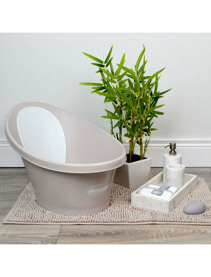 - ИНОВАТИВНО! Гърбът на ваната е покрит с мека пяна, която ако докоснете, ще откриете, че е по-топла от останалата част на ваната. Помислете, че когато потапяте бебето си във вода, сте задали температурата на водата от 37 градуса. Топлата му кожа, обаче, няма как да не се докосне до материала на ваната, който е значително по-студен от водата и телесната му температура. Поради температурната разлика, най-веротно, вашето бебе ще се разстрои. Със специалния материал от пяна на Shnuggle това не се случва, тъй като гърбът на бебето се опира в топла повърхност.