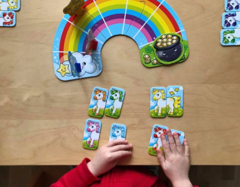 Весела игра с дъга и еднорози, която тренира паметта, разпознаването на различни цветове и уменията за напасване!
