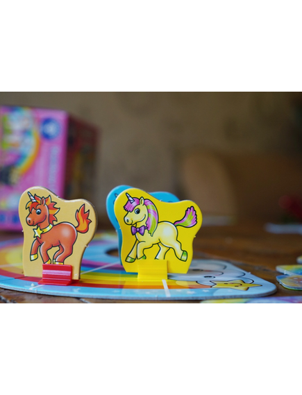 Целта е да станеш първия играч, който събере 6 еднорога и достигне до гърнето със злато в края на дъгата!