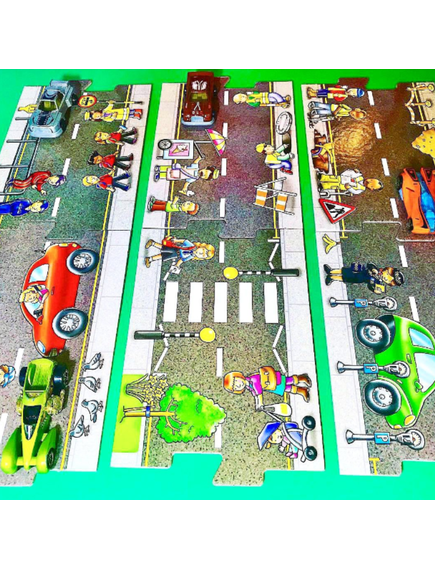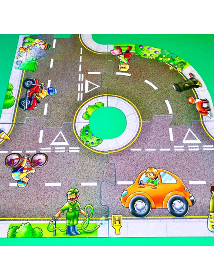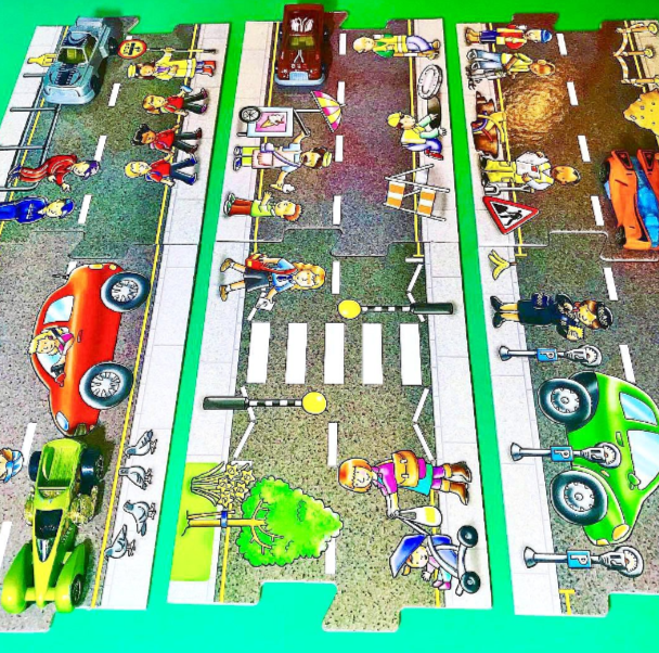 Весел пъзел, който учи децата на пътна безопасност! Създайте различни маршрути, като използвате парчетата от пъзела.