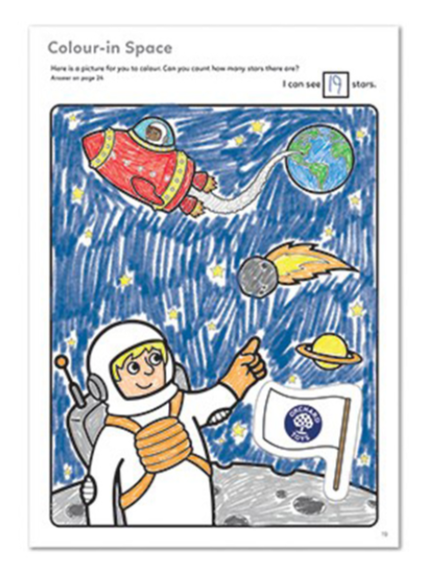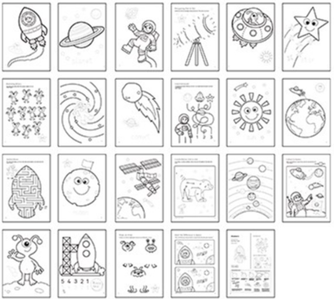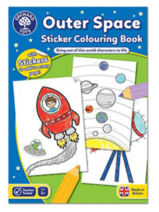 Тази забавна книжка за оцветяване съдържа рисунки на всички наши любими герои от космоса и съответвсващи стикери, като награда за всяка завършена страница!