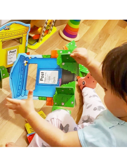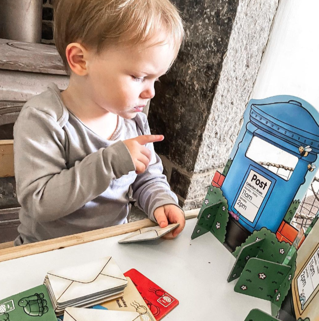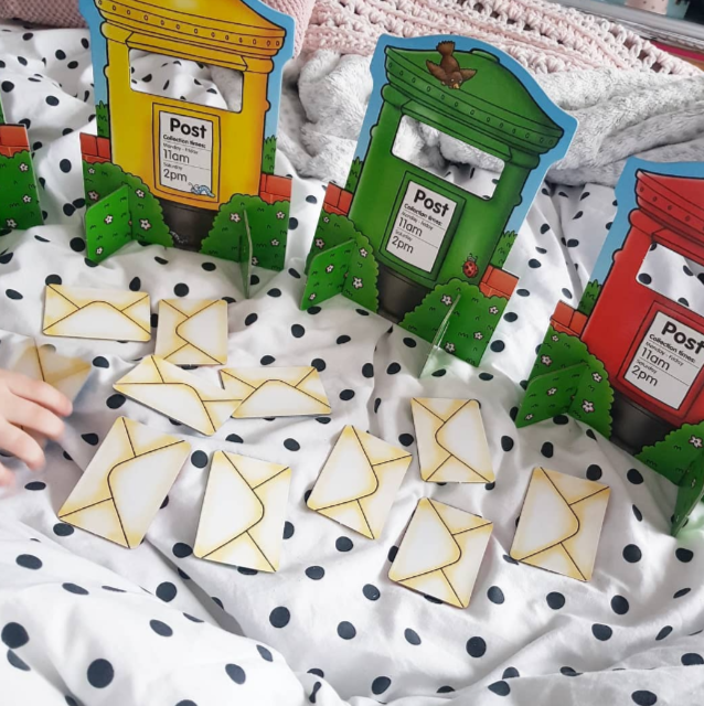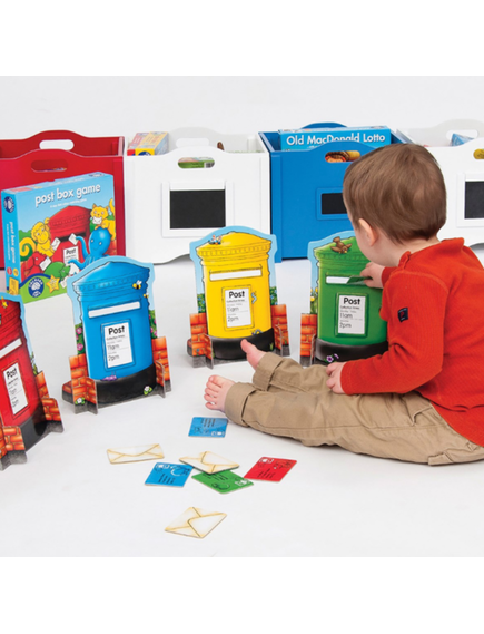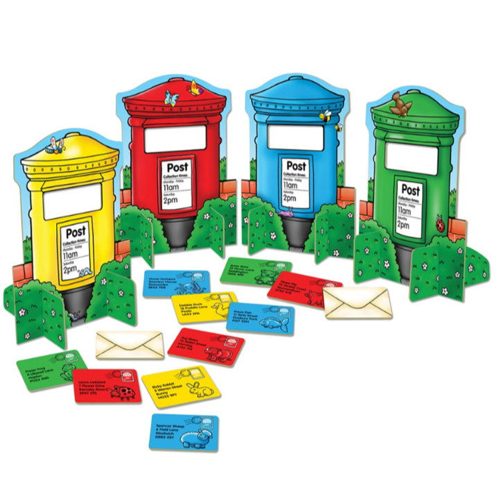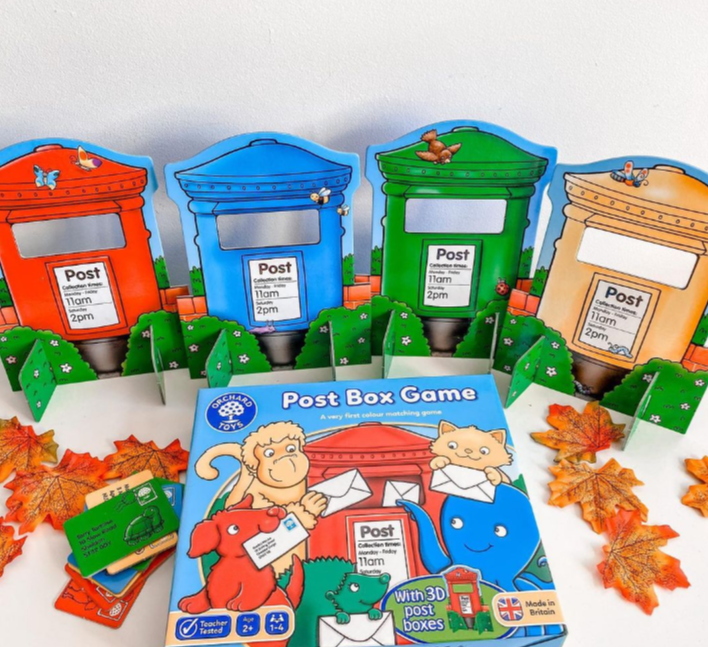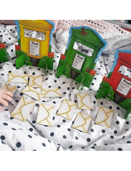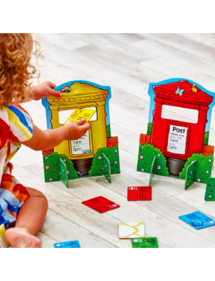 Весела игра за напасване, която ще донесе пощата вкъщи. Децата ще трябва да свържат писмата с цветните пощенски кутии.