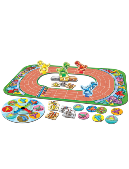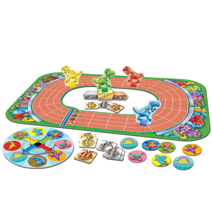 В тази весела игра, децата трябва да предвижат своя динозавър до финалната линия, за да спечелят бронзов, сребърен или златен медал!