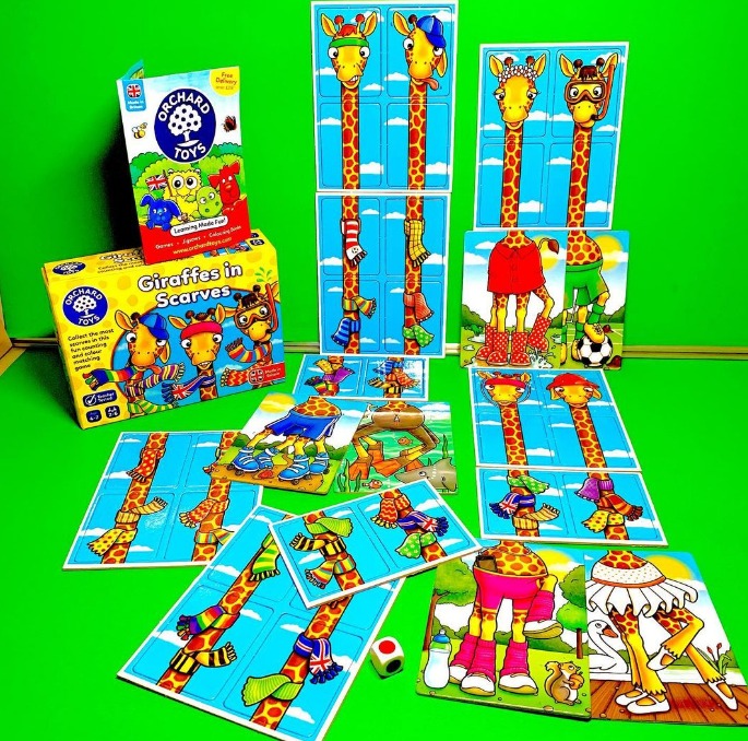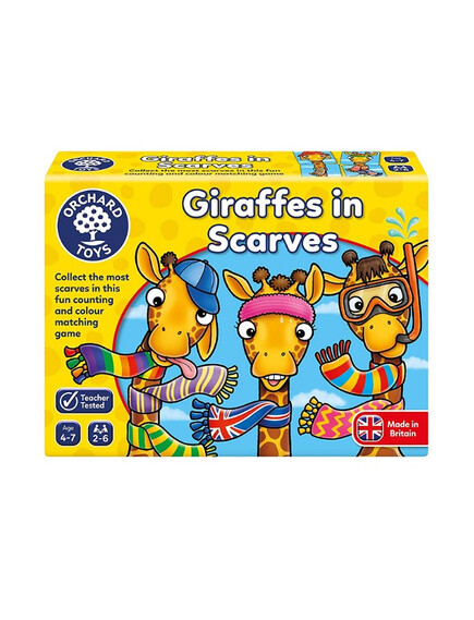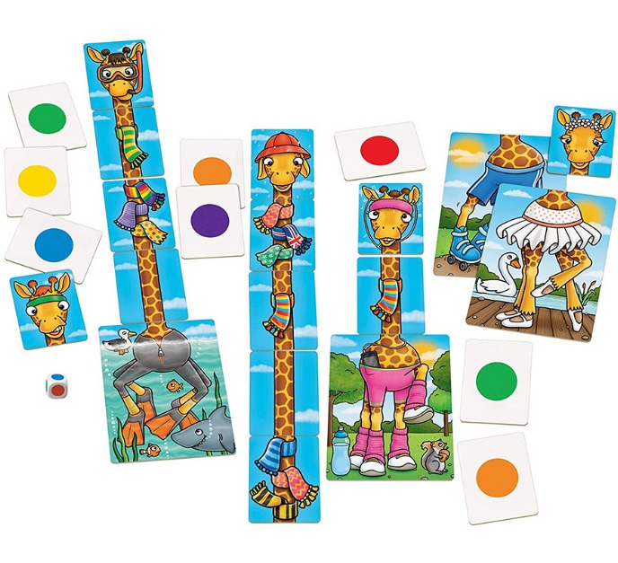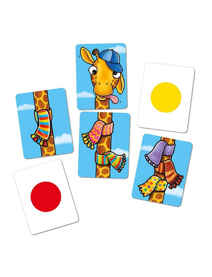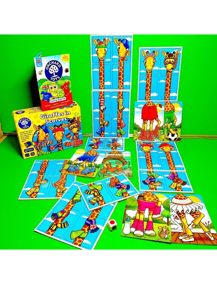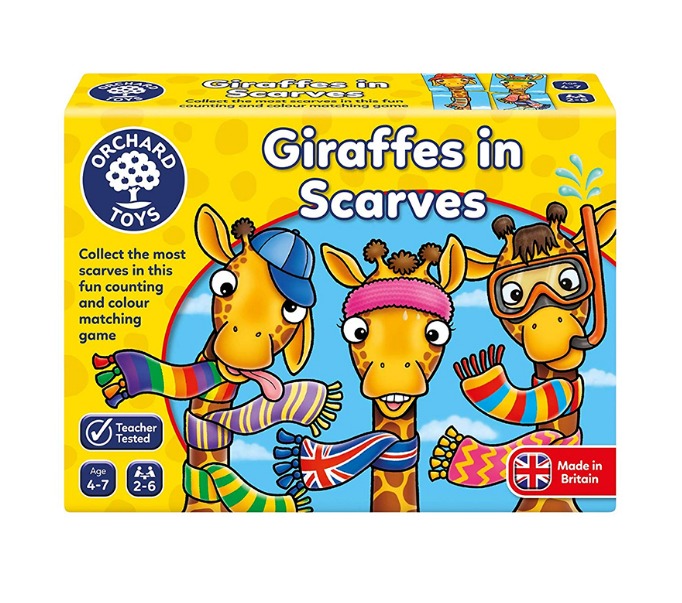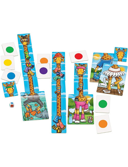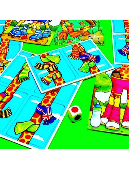 Колко шалчета можете да съберете за Вашия жираф? Хвърлете зарчето и проверете! Победител е играчът с най-много шалове на жирафа си!