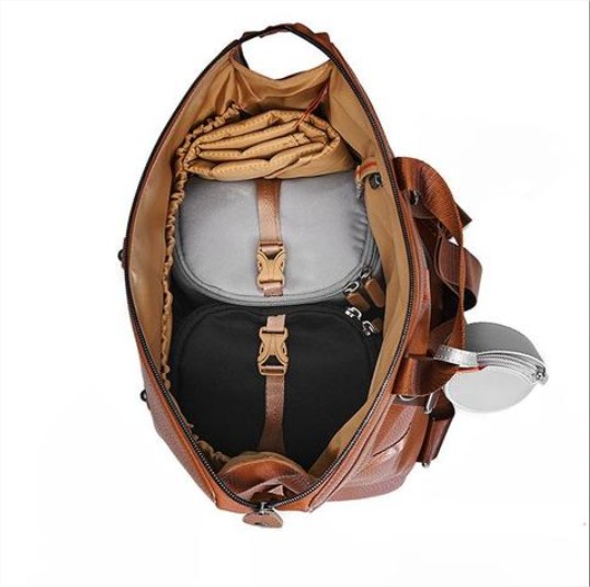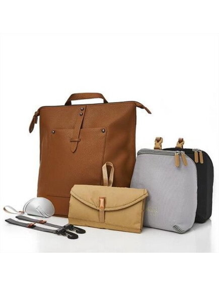 Освен основната раница, тя включва и различни чанти/несесери за нуждите на бебето. Термоизолирана чанта за мляко или пюрета, която отговаря на всички спецификации, а също и подложка за повиване/ смяна на пелени.