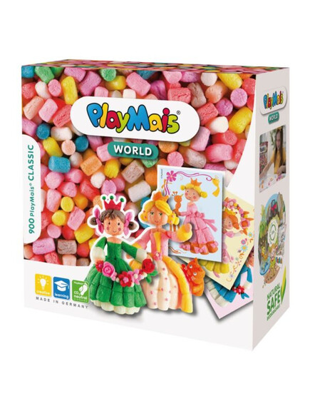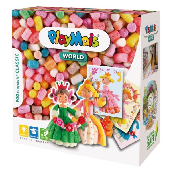 С PlayMais® WORLD децата от 5-годишна възраст да направят свои собствени принцеси и да създадат истинска магия на приказките с тях. Включени са около 900 PlayMais®, предварително изрязан шаблон за принцесите, инструкции и аксесоари.