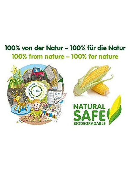 - Направени от 100% биоразградими материали – царевично нишесте, вода и растителни багрила, без химикали.