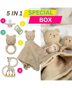 Една кутия, в която ще намерите най-любимите продукти на най-малките! Луксозен комплект, който състоящ се от  внимателно подбрани продукти , които да придружат Вашето бебе още от самото начало.  Вътре ще откриеш :  1. УТЕШИТЕЛЧЕ Много меко утешителче, което да...