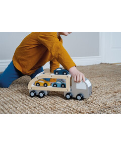 Автовозът на Jabadabado е страхотен! Той има разкачащо се ремарке на два етажа, със спускаща се вратичка и 3 коли, които ще може да транспортирате където пожелаете.  18+ месеца
