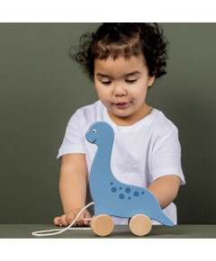Това е идеалната дървена играчка за упражняване на двигателните умения след навършване на 1 годинка! Детето Ви може свободно да бута динозавърът , който има две колела като крачета, върху каквато и да е повърхност, тренирайки движението си без да усети ! Помага за развитието...