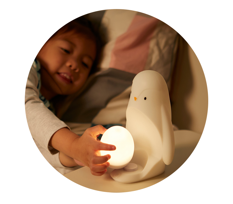 Пингвинчето-лампа на Gro е най-добрият другар в детската стая. Винаги близо до децата!
