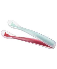 За улеснение при прехода от хранене с бутилка към хранене с лъжица! Тези силиконови лъжици са идеално пригодени за прехода между храненето с бутилка и първите ястия. Може да се мият в съдомиялна. Характеристики: 2 меки силиконови лъжици Sophie la girafe, червена и синя...
