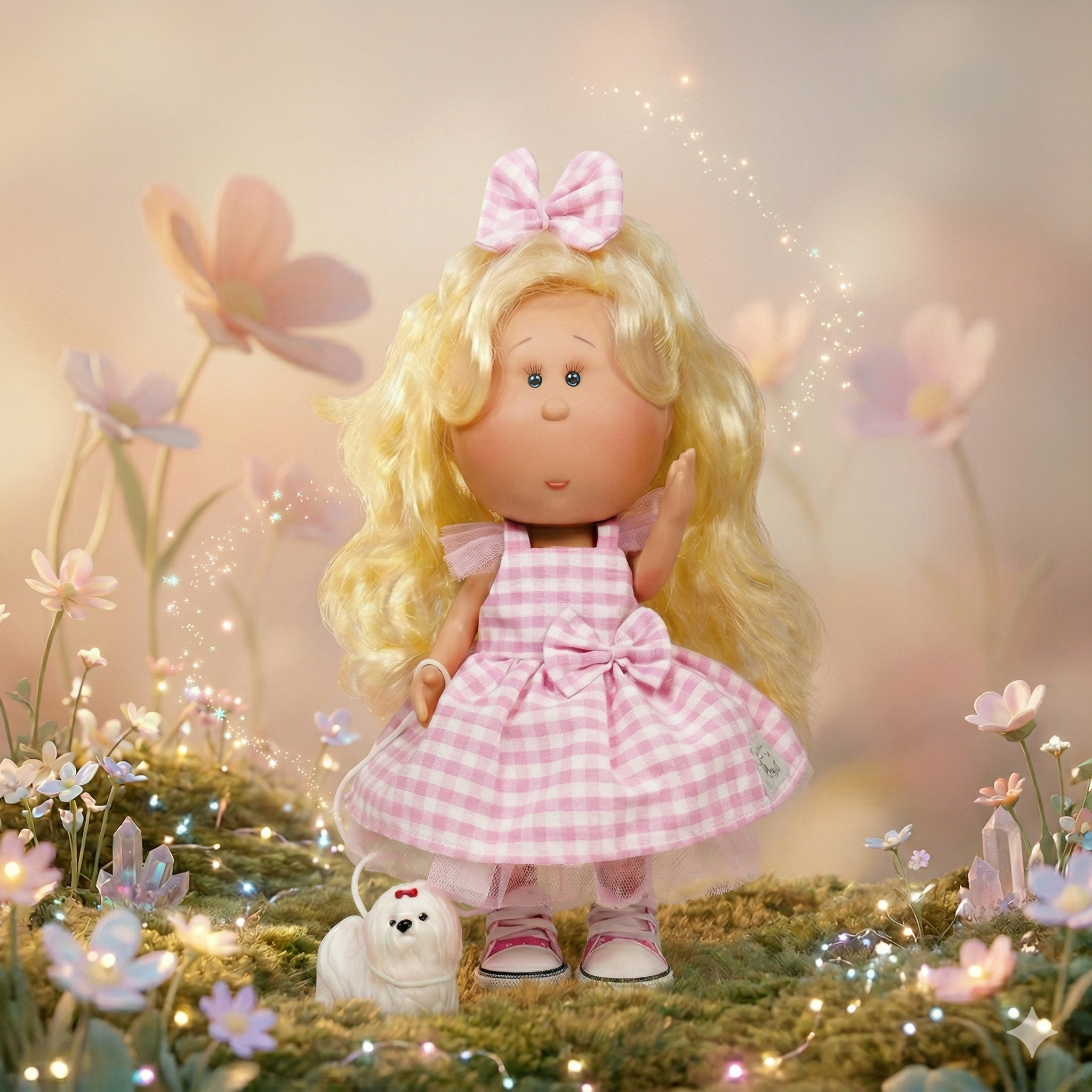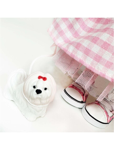 Със своята къдрава коса, модерни дрехи и сладко кученце, тя е готова да покори света заедно с теб!