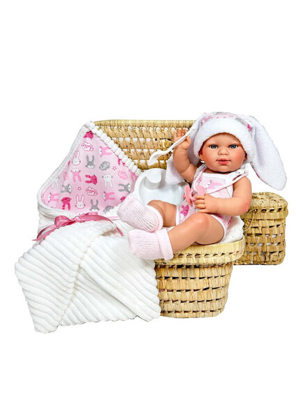Аксесоарите му са впечатляващи! То има собствено одеяло, с което да го завиеш, залъгалка, шапка и аксесоари за хранене. Също така има акт за раждане, за да го подарите на най-специалният рожден ден!