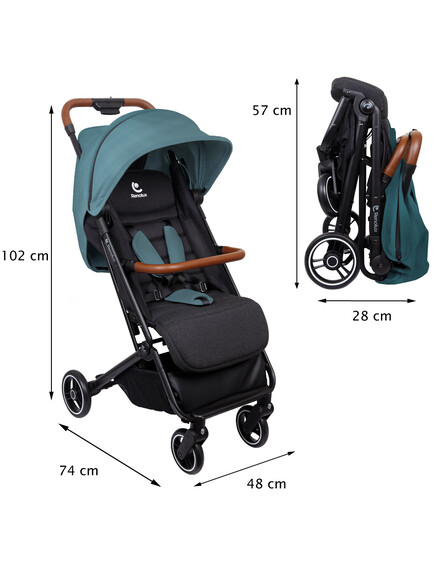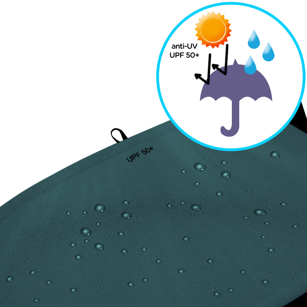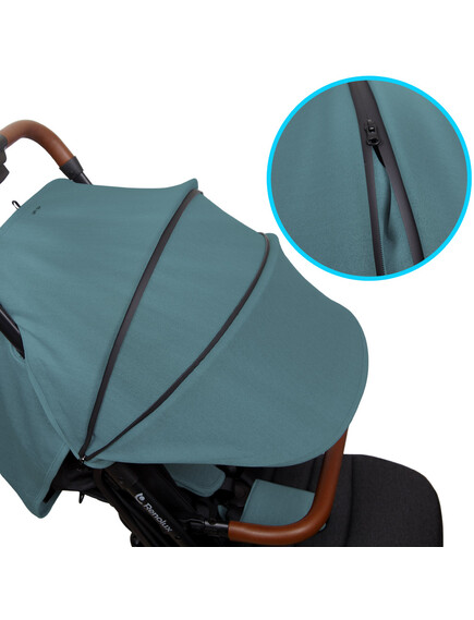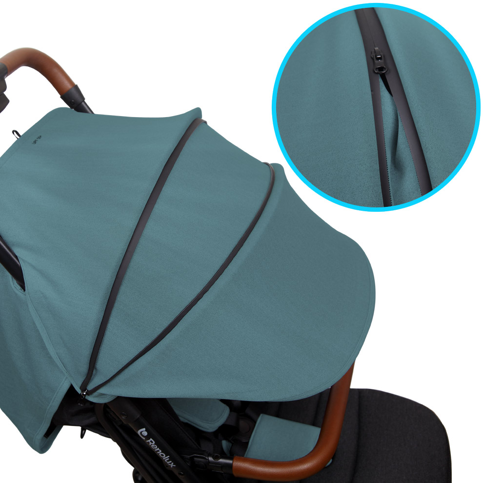 - Широк регулируем сенник с цип, водоустойчив и с максимална слънцезащита UPF 50+