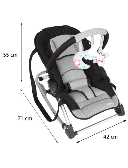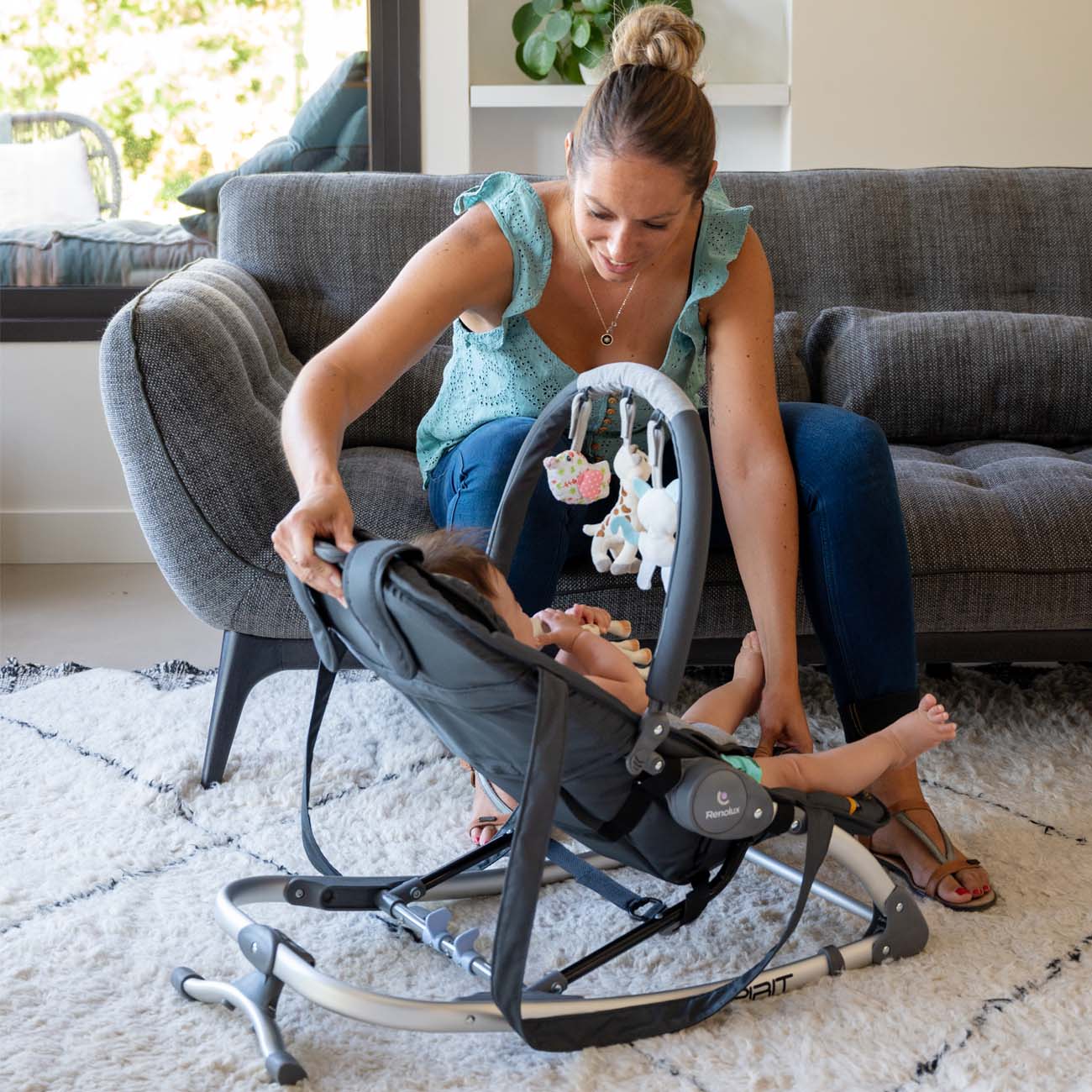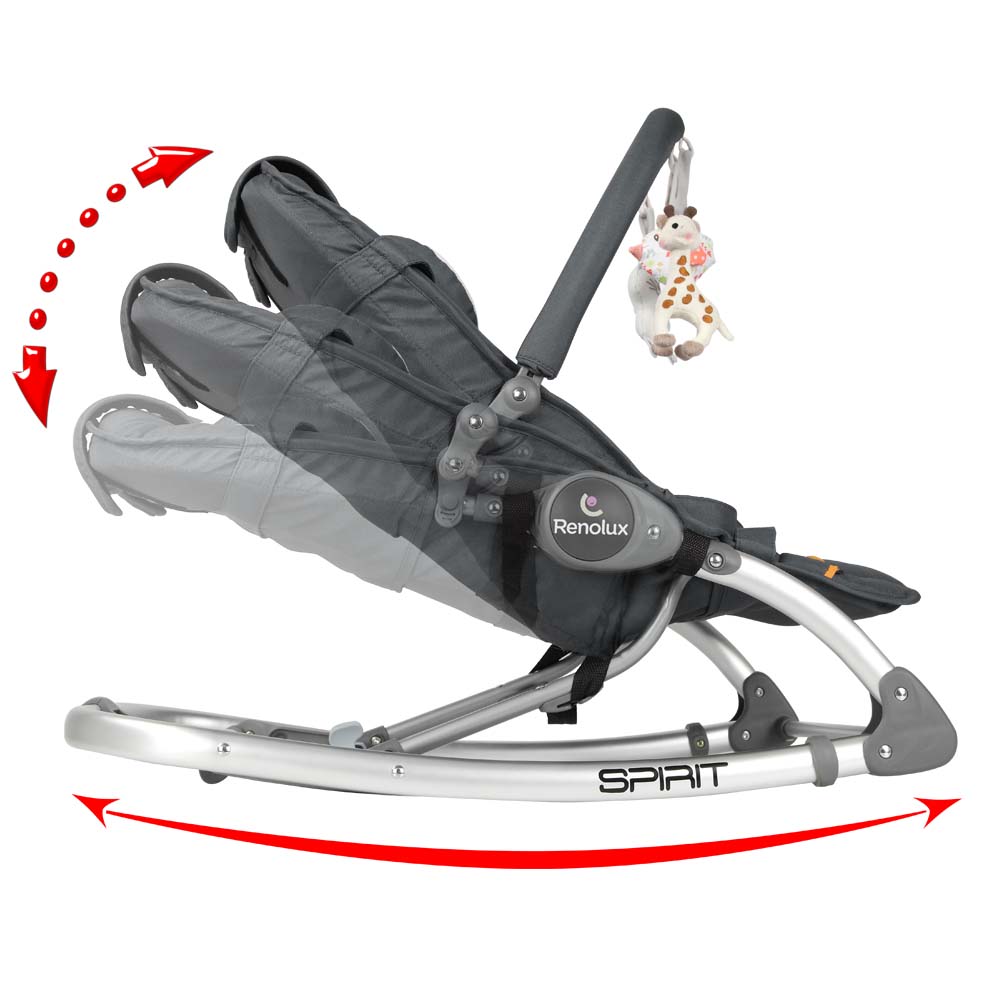 SPIRIT SUNRISE: Регулируем статичен или люлеещ се шезлонг за бебе, подходяща от раждането, с лесно накланяне и сгъване с една ръка.