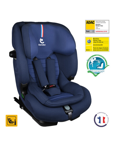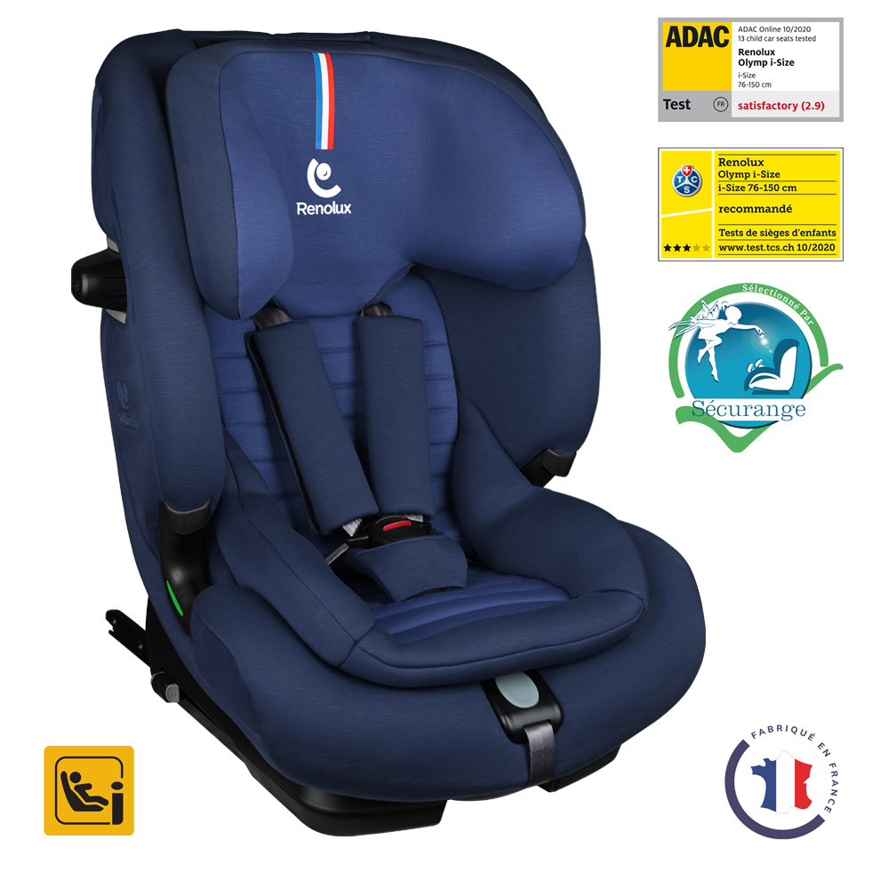 Olymp от Renolux е тестван и оценен със “Satisfactory” от ADAC (Германия) и "3 звезди" от TCS (Швейцария). Препоръчано от "Sécurange" !! R129 i-size одобрен и произведен във Франция!.Притежава ексклузивната патентована технология Softness®, патент на Renolux. Осигурява комфорт и безопасност! Технологията Softness® представлява подсилена стоманена рамка обвита в полиуретанова пяна с висока плътност. Столът има и допълнителна странична защита, помагаща в случай на страничен удар.