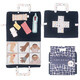 Този комплект за първа помощ включва термометър, лепенка, марля и компрес, както и 6 илюстрации на болка.