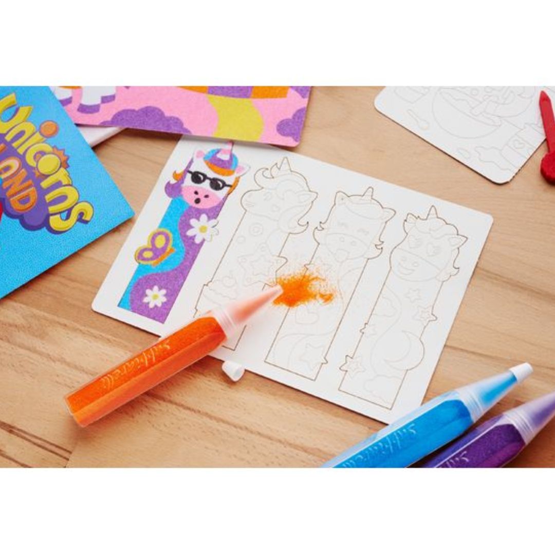 С маркерите е изключително лесно да се борави, а освен това излишният пясък, който не е полепнал по рисунките може да се събере обратно в писалките.
