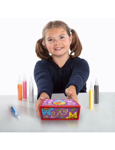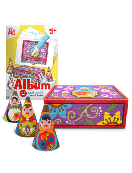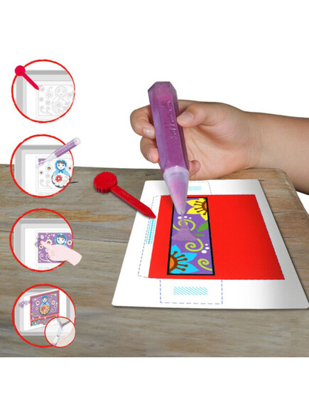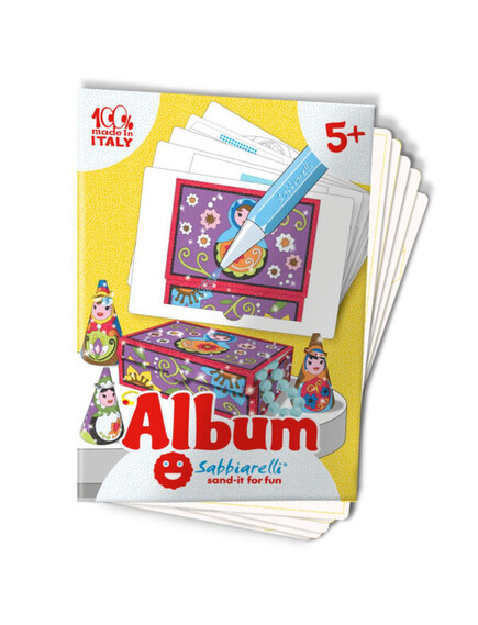 Няма нужда от ножици и лепило! Премахвайки хартията от листовете, залепващата повърхност остава оцветена с пясък.