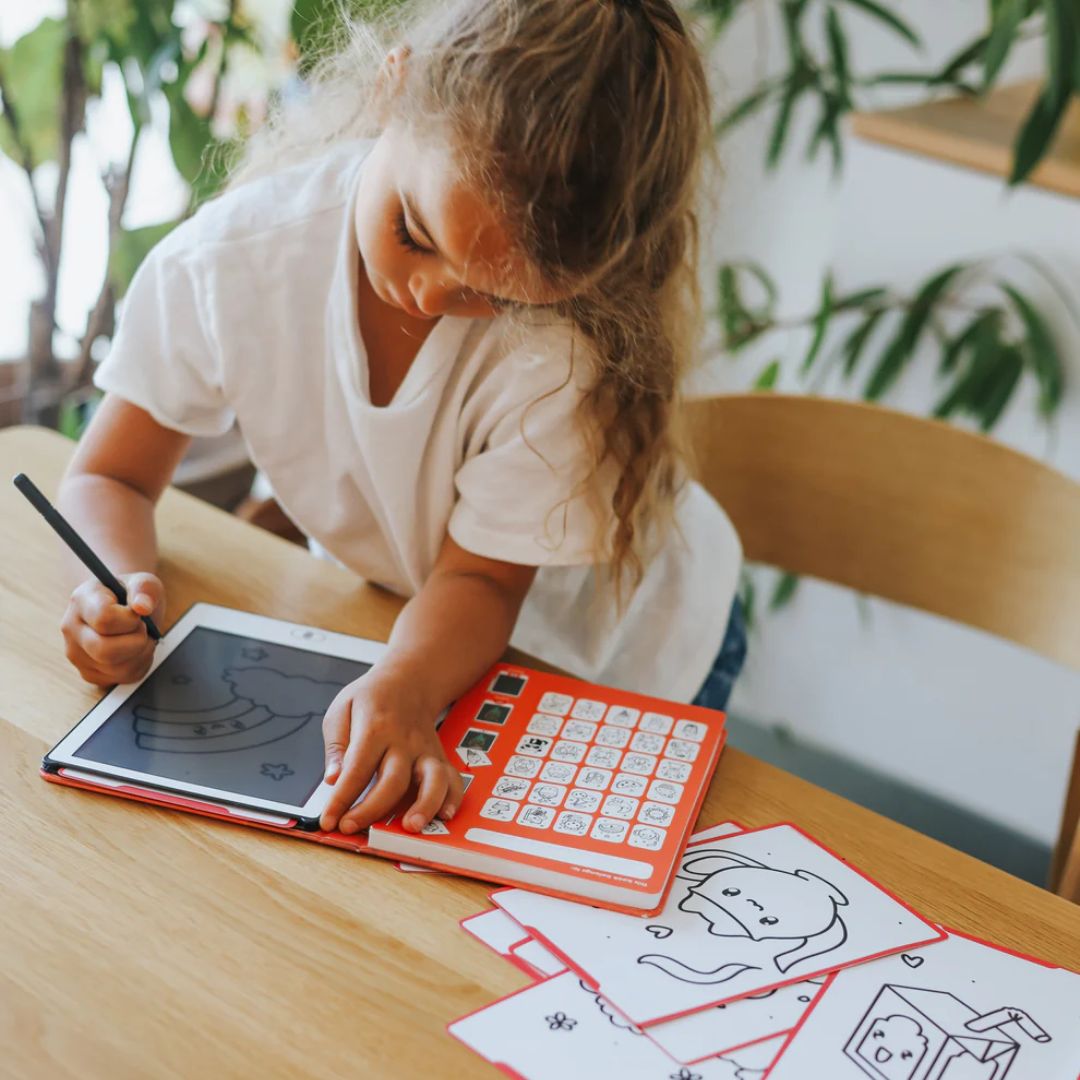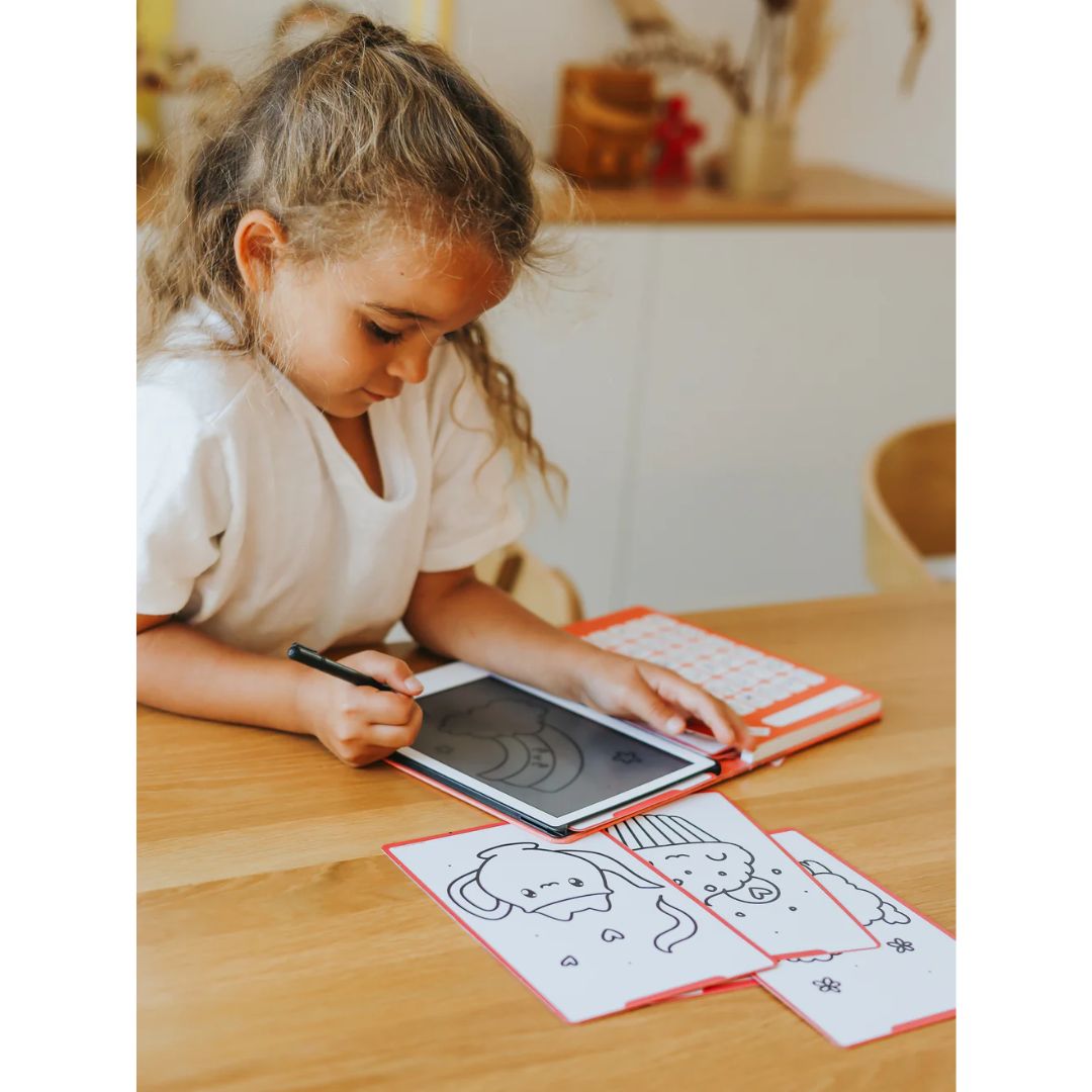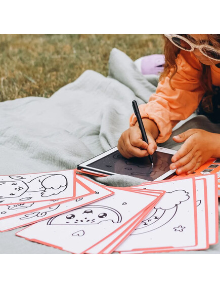 С 30 уникални изображения/дизайна, той е идеален за развитие на въображението, подобряване на фината моторика и безопасно запознаване на детето с първите стъпки на работа с екран и писалка — без разсейвания.