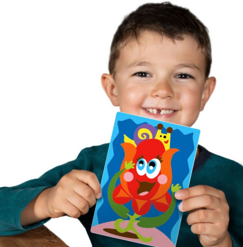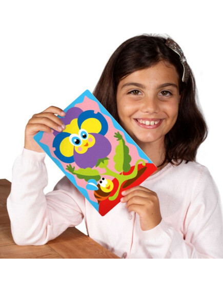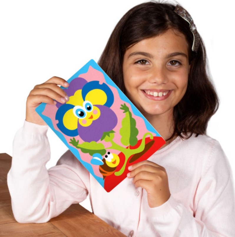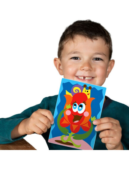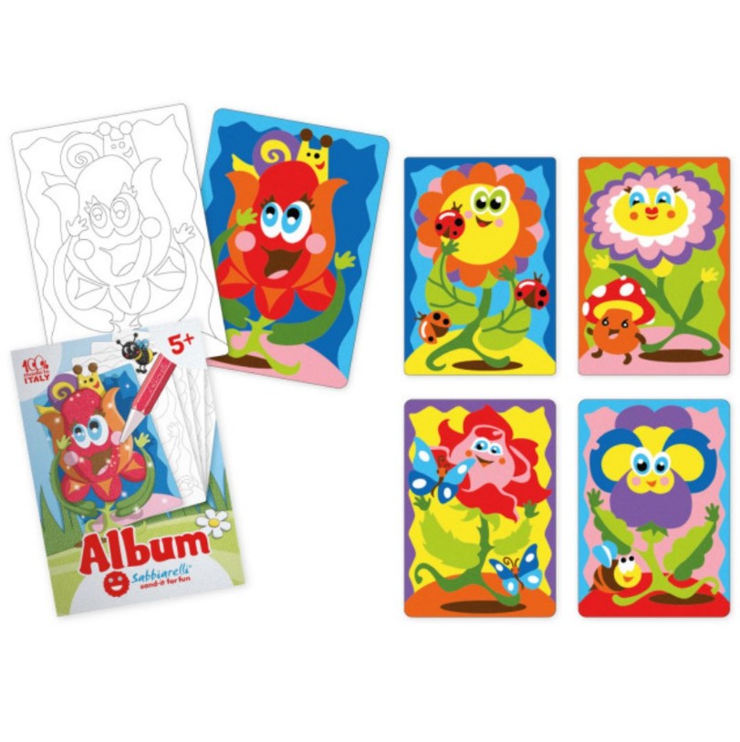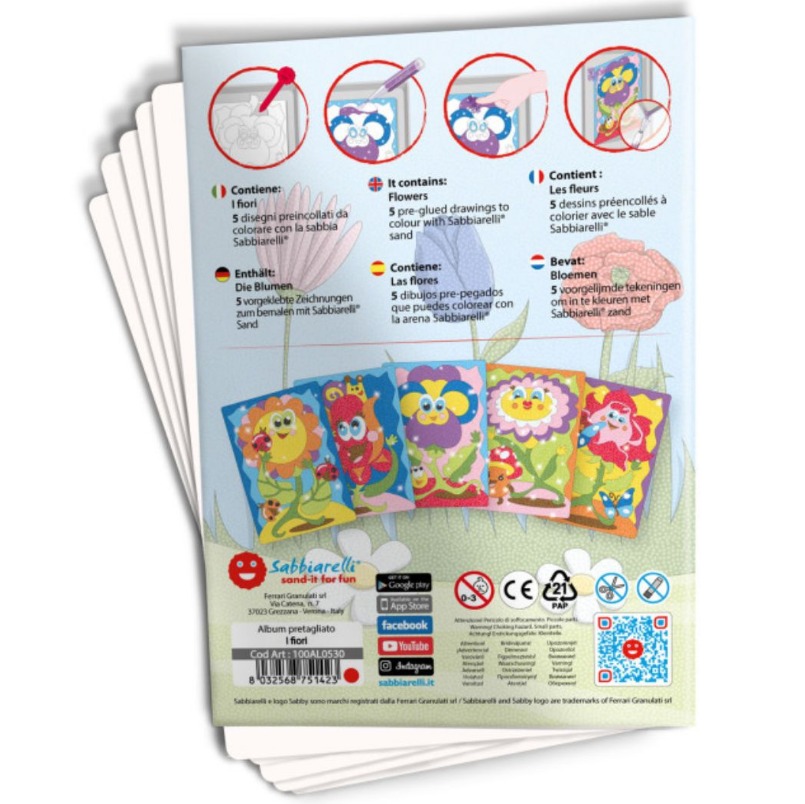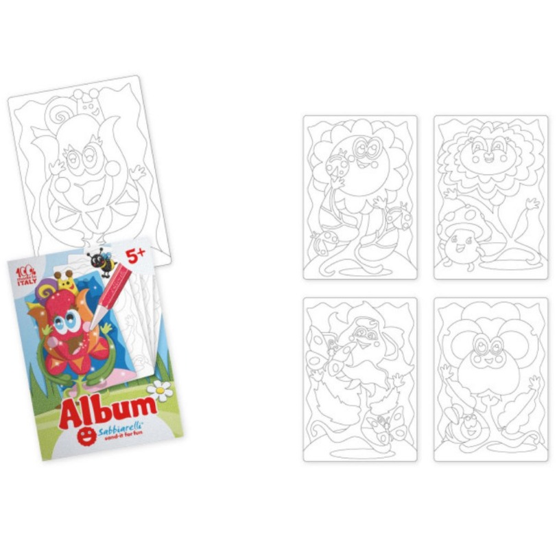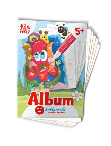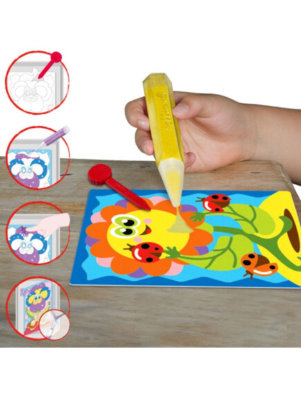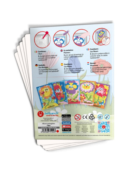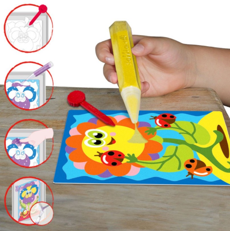 Няма нужда от ножици и лепило! Премахвайки хартията от листовете, залепващата повърхност остава оцветена с пясък.