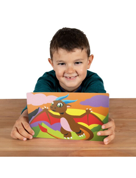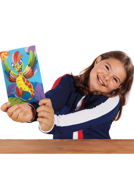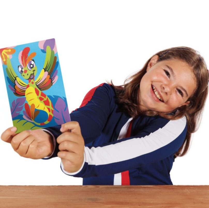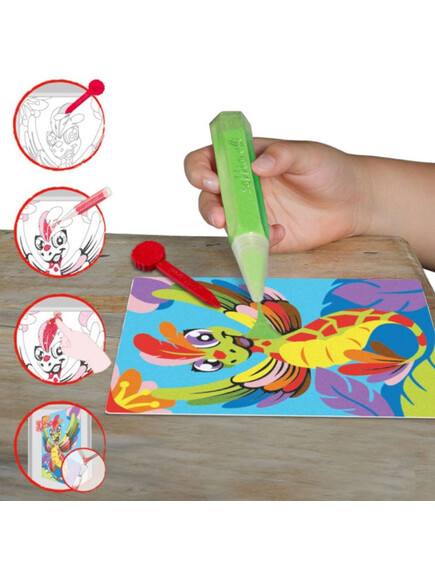 Няма нужда от ножици и лепило! Премахвайки хартията от листовете, залепващата повърхност остава оцветена с пясък.