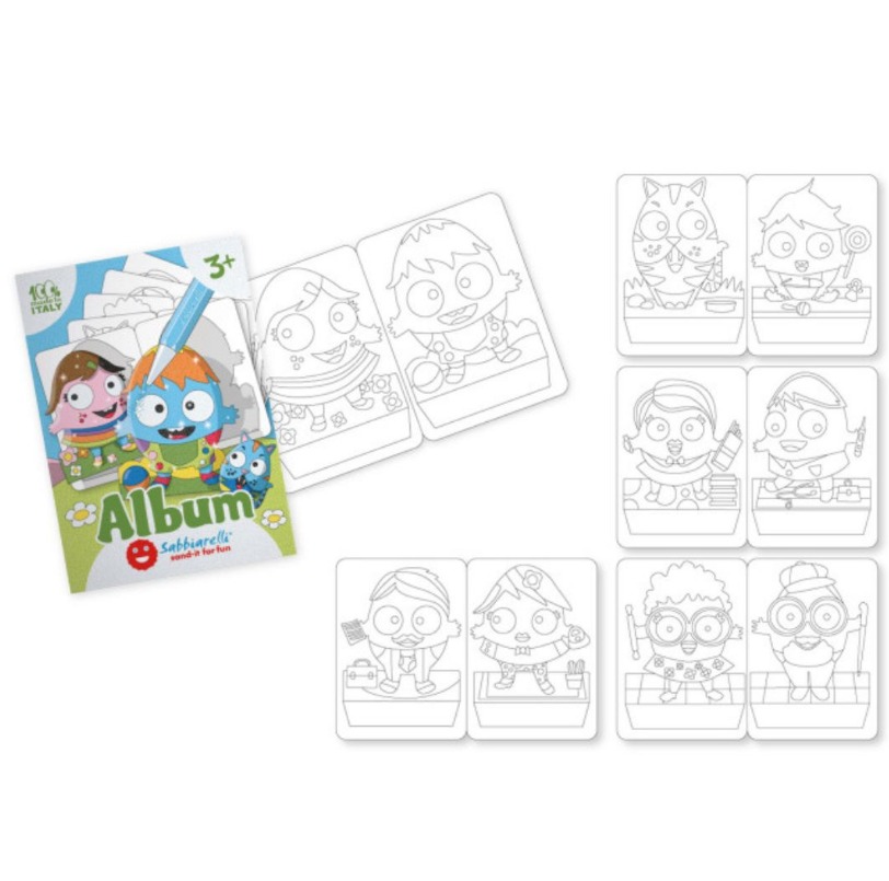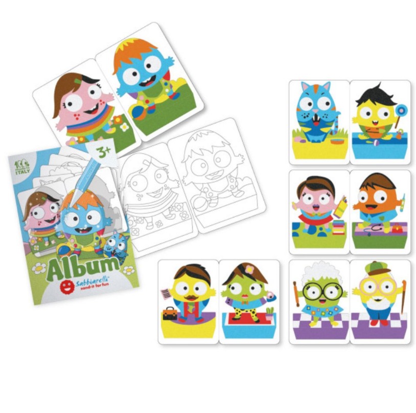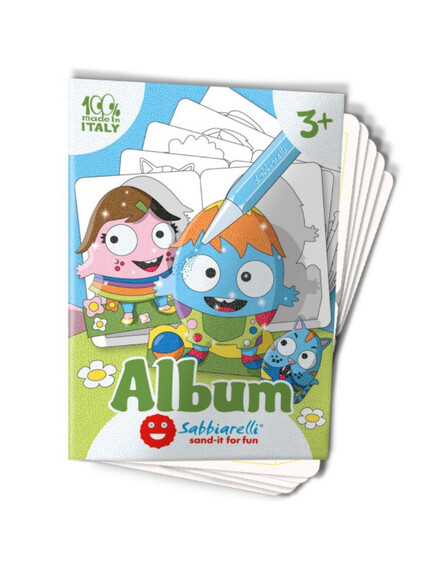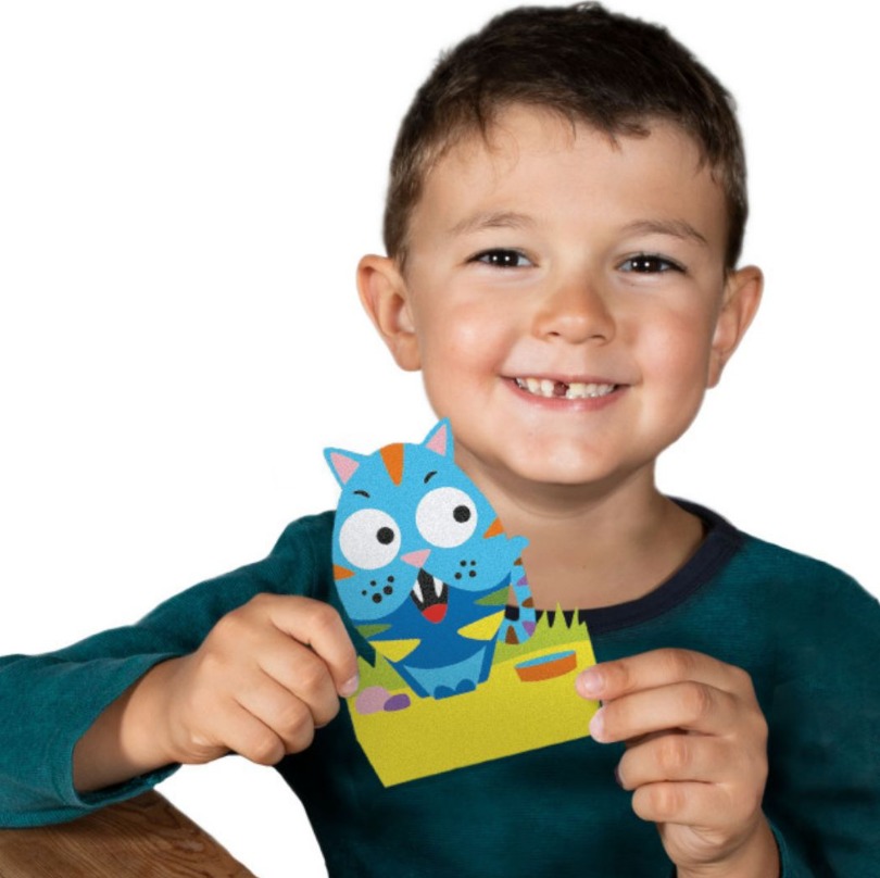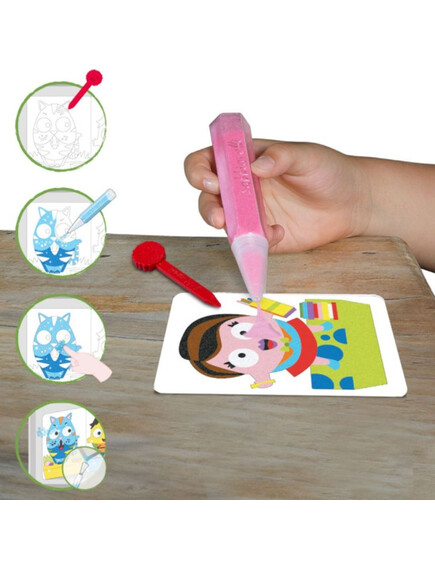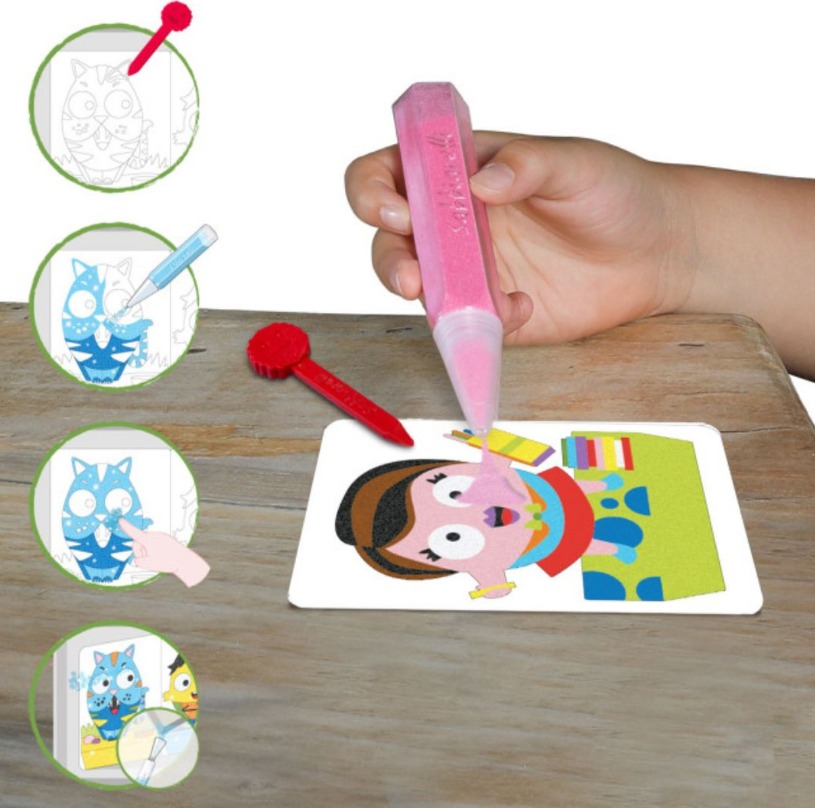 Няма нужда от ножици и лепило! Премахвайки хартията от листовете, залепващата повърхност остава оцветена с пясък.