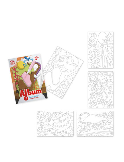 Книжката съдържа 5 листа (15х20см) самозалепваща се харти с различни изображения, готови за оцветяване.