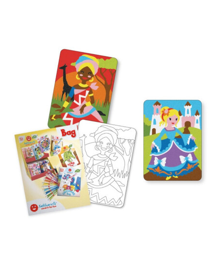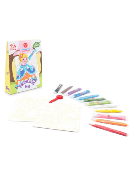 Sabbiarelli®: Сет от 2 шаблона и 12 сашета цветен пясък - Принцеса 3+ години