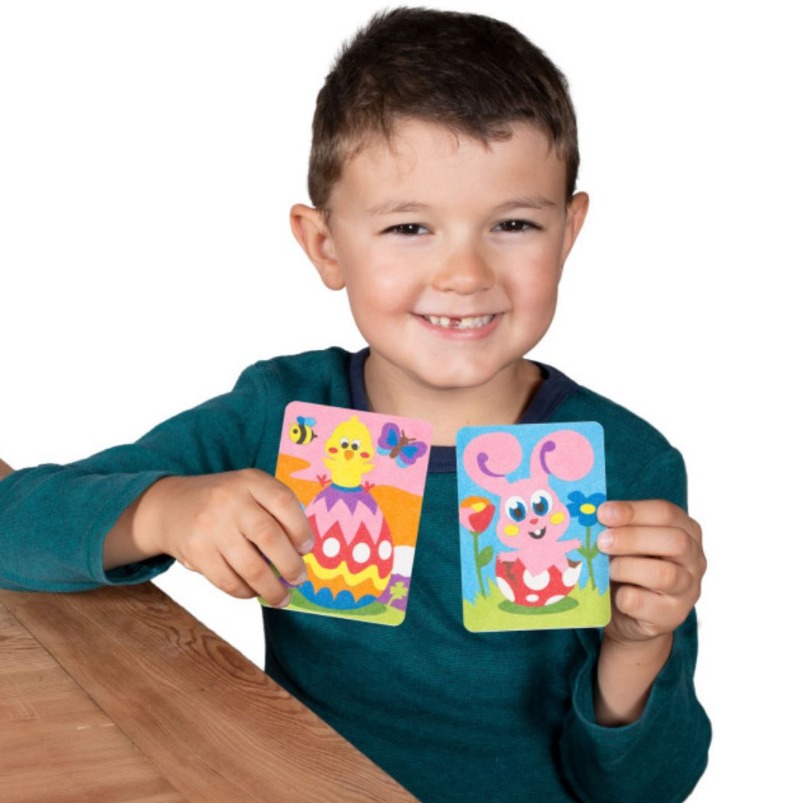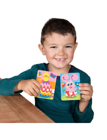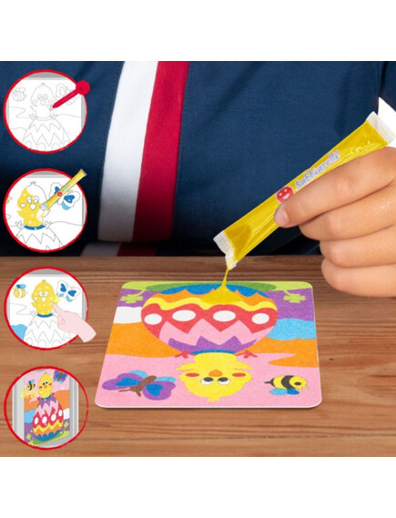Няма нужда от ножици и лепило! Просто отлепете и оцветете с цветния пясък.