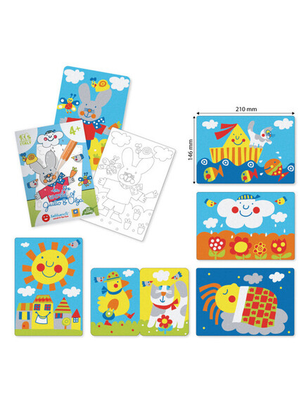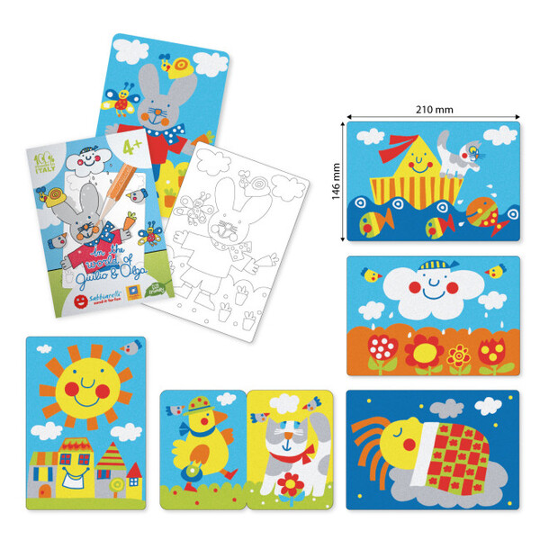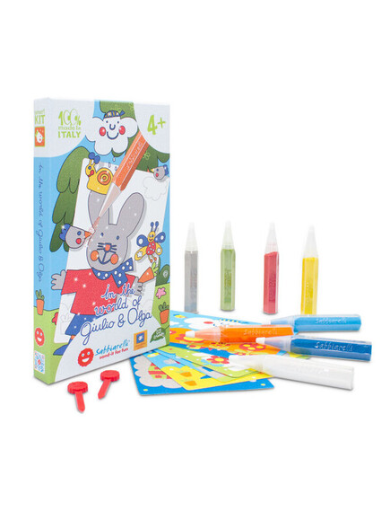 Sabbiarelli®: Средна кутия - Art & Craft с 8 пясъчни маркера и 7 шаблона - В света на Хулио и Олга 4+ години