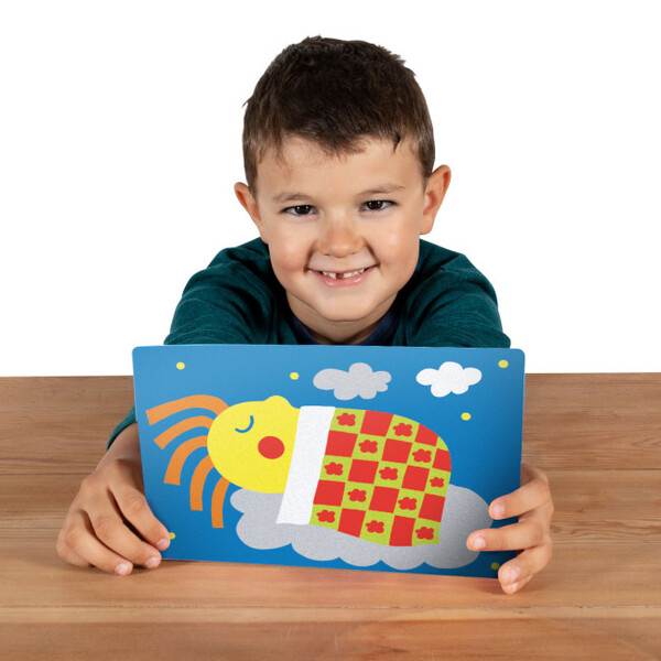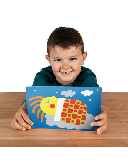 Няма нужда от ножици и лепило! Просто отлепете и оцветете с цветния пясък.