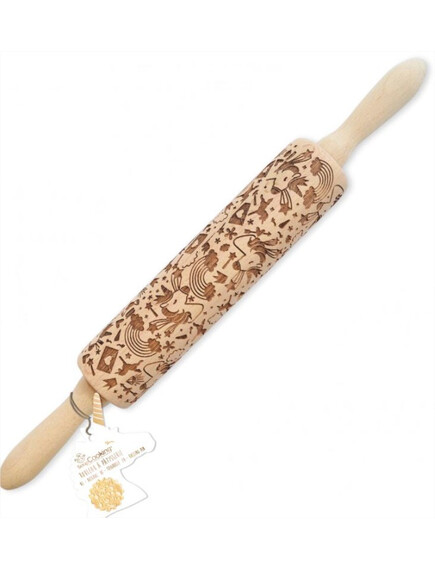 Scrap Cooking Дървена ролка за бисквитки с шарки „Еднорог“