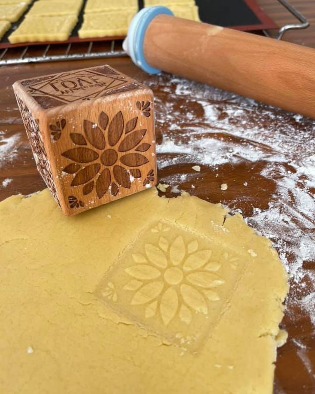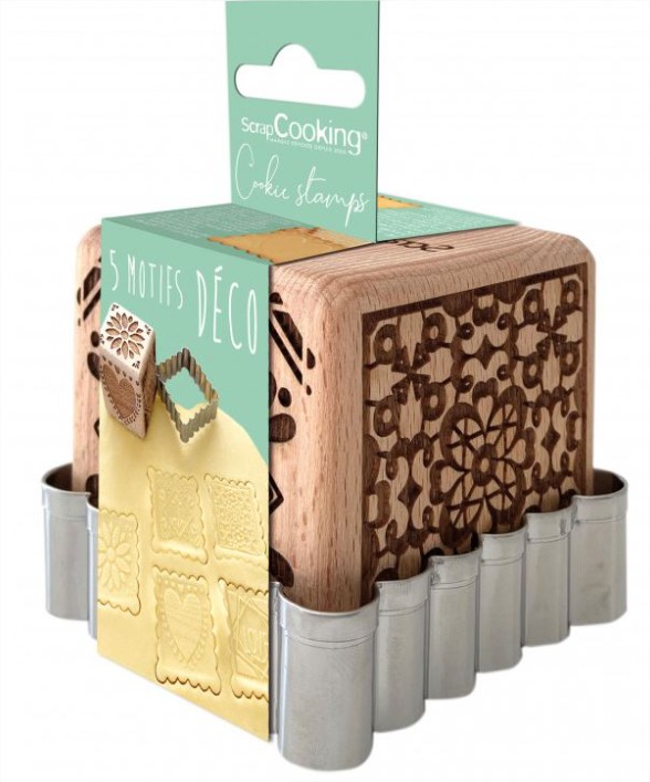 Scrap Cooking Дървени печати и резец за бисквитки с 5 елегантни дизайна