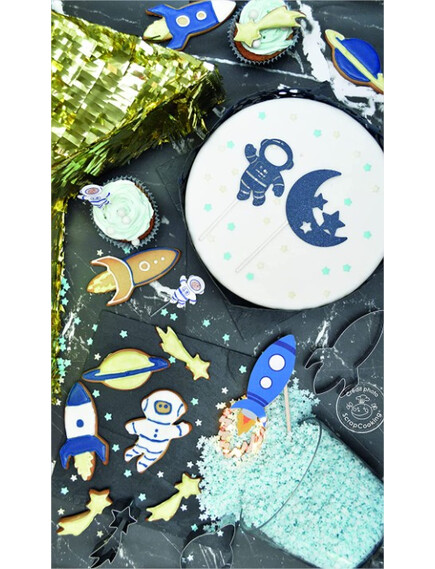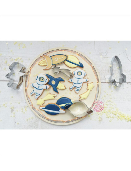 Комплектът включва четири резци на космическа тематика в различни форми за деца, които обичат тази тема! Астронавт, ракета, планета и звезда