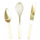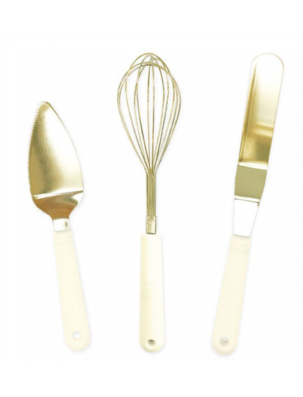 - 1 шпатула за торта от неръждаема стомана с пластмасова дръжка с размери 12 х 3 см