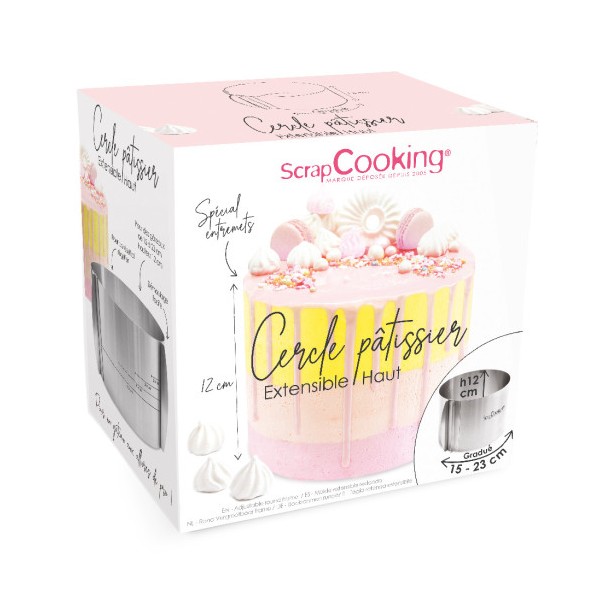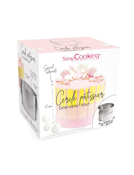 Регулируемата форма за торта от ScrapCooking, Ви позволява да приготвяте страхотни торти и да печете вкусни сладкиши в различни размери. Подходящ е за торти и сладкиши с диаметър от 15 до 23 см и височина 12см.