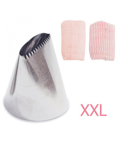 Украсете ефектно вашите сладки отгоре и по периметъра с големия накрайник - релефна лента Характеристики: Материал: Хранителна неръждаема стомана 18/8 Размери: Ø5 x H5,5 см (отвор 1,1 см) Инструкции за почистване: Измийте с топла вода и подсушете преди първа употреба и след това...