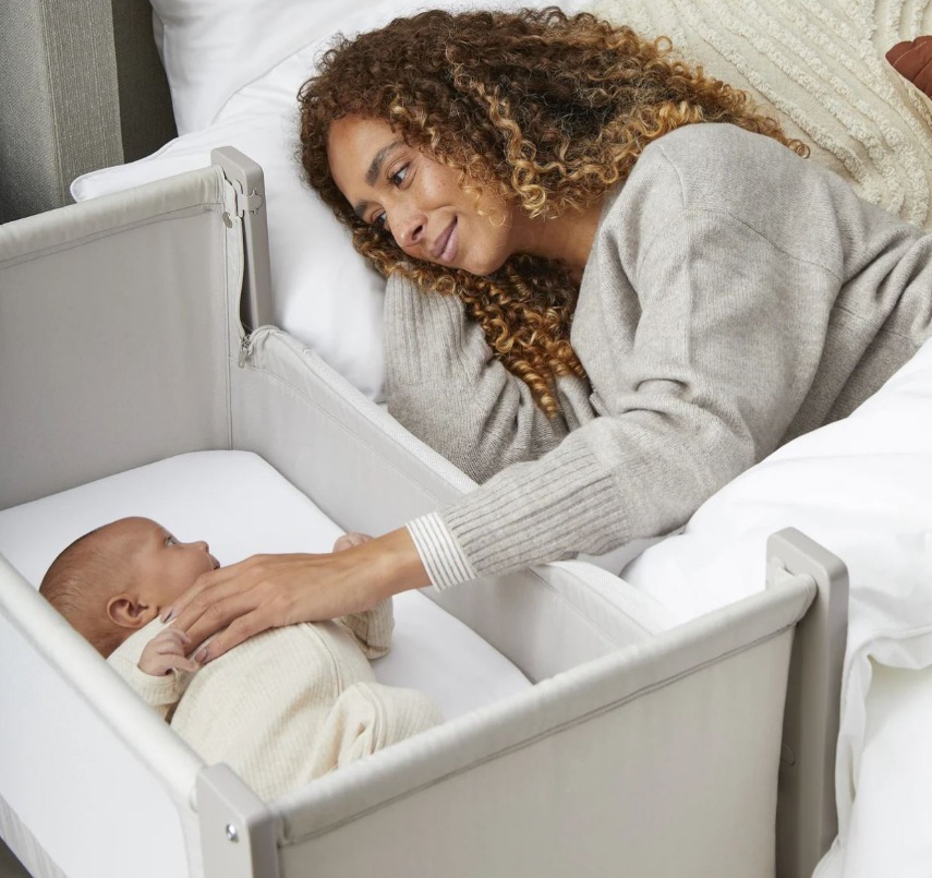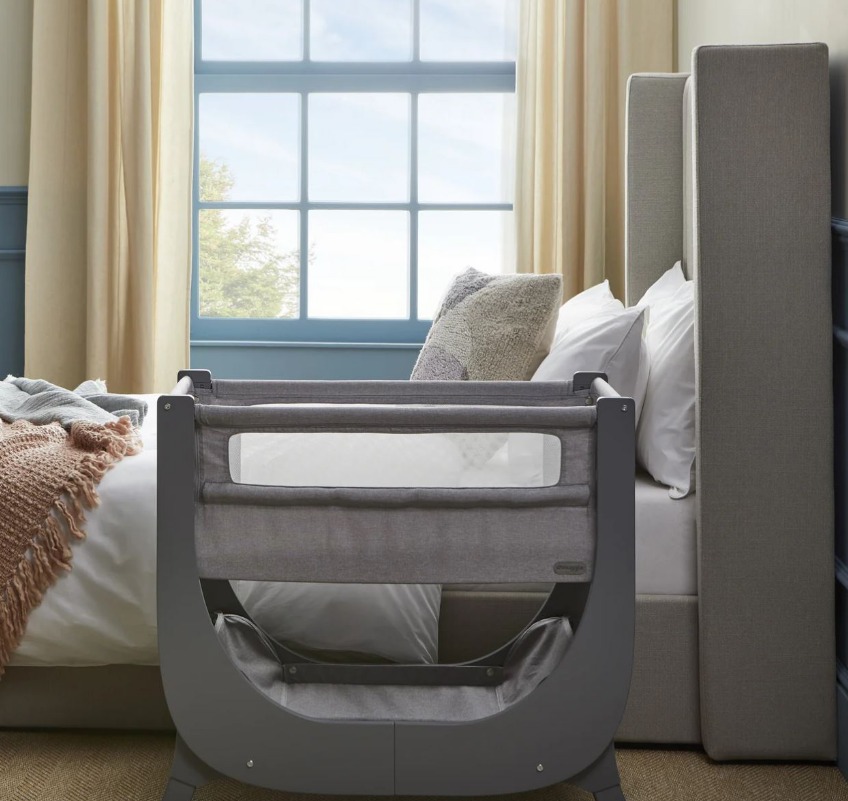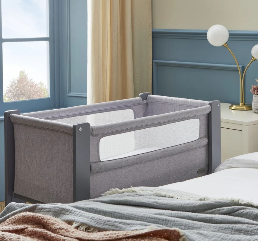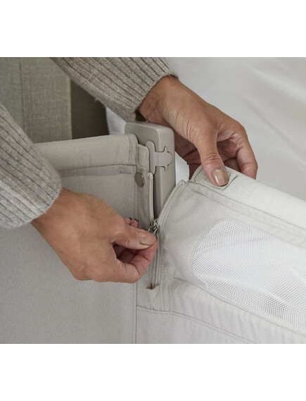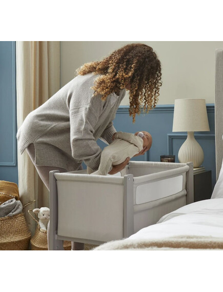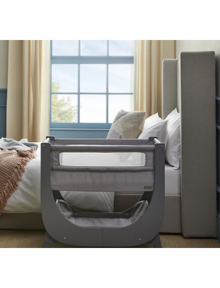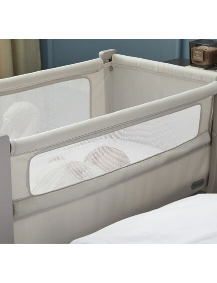 Сгъваемата страна "whisper quiet" е лесна и практична за използване, без да безпокои детето, а твърдата опция за ниско ниво е проектирана за безопасен сън до леглото на родителите, съгласно стандарт за безопасност на креватчето BS EN 1130:2019