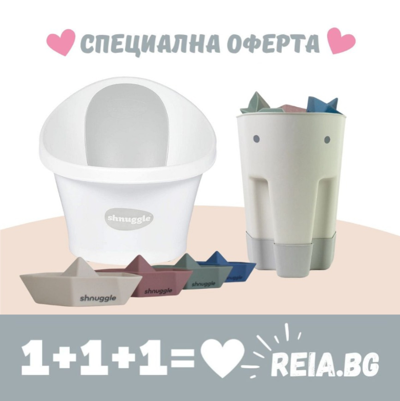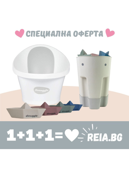 В това страхотно Shnuggle комбо имате възможноста да вземете световно награждаваната ваничка Shnuggle в бяло и сиво + прекрасните лодки за игра и кошчето за съхранение и сушене на играчки в бежов цвят.