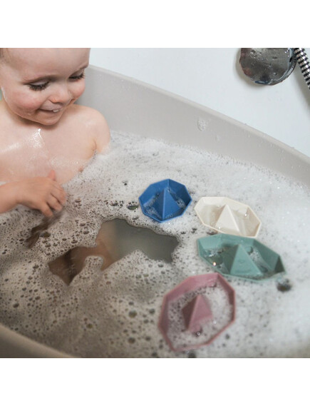 Shnuggle Комбо: Световно награждавана ваничка Бяло / Сива + Силиконови лодки - 4бр. + Кошче за съхранение и сушене на играчки Бежово