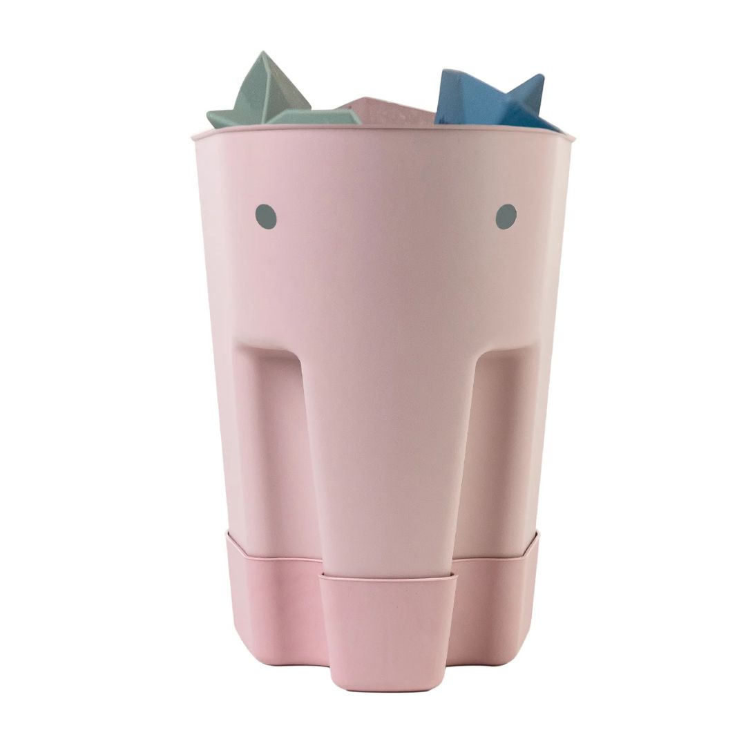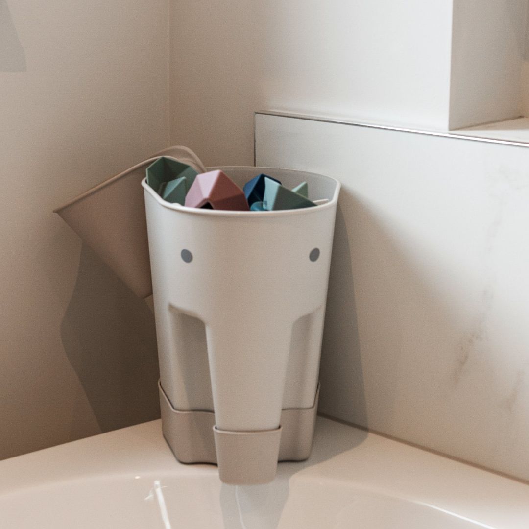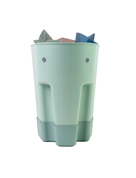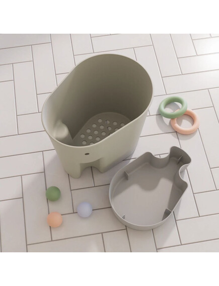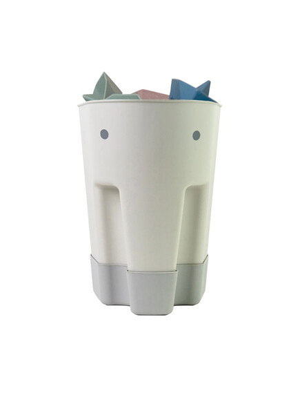 Сладката кофичка във формата на слонче, събира всички играчки след къпане, като в същото време ги изсушава, тъй като на дъното има специални дупчици.
