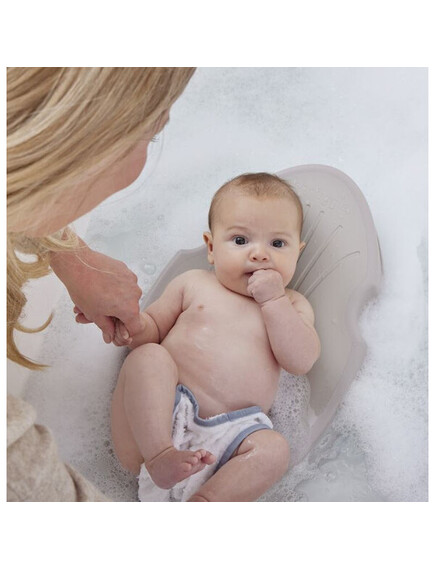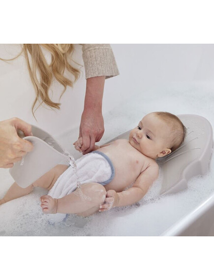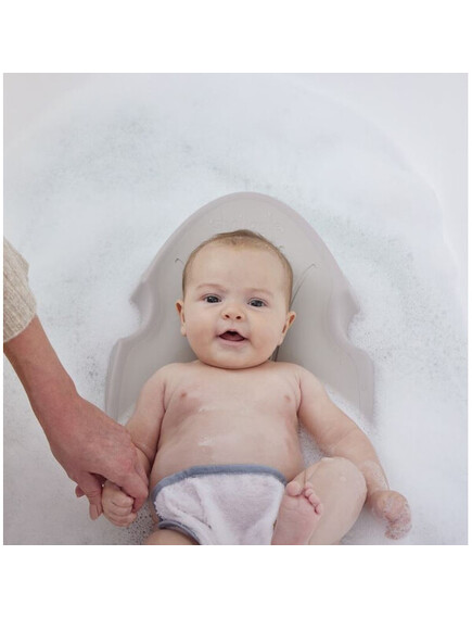 Подложката е специално проектирана, за да осигури стабилност, мекота и усещане за сигурност по време на баня. С нейния ергономичен, „прегръщащ“ дизайн бебето лежи удобно и спокойно, а родителите се чувстват уверени и спокойни.