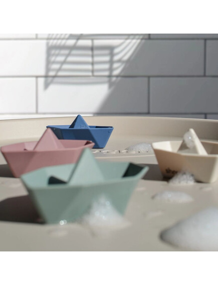 Къпането става истинско приключение с този цветен комплект от 4 силиконови лодки! Те са създадени за малките ръчички и подпомагат развитието на фината моторика и координацията.